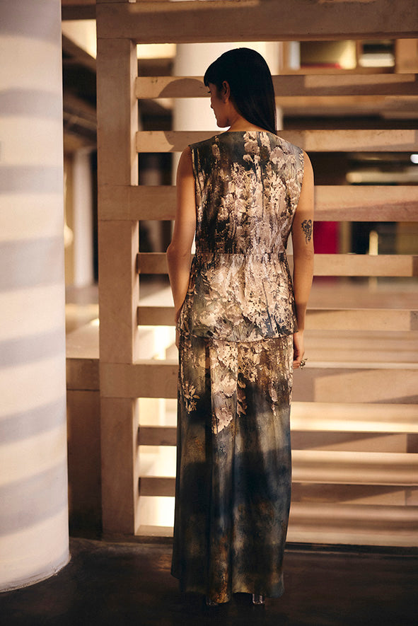 Ash Dusk Beaded Peplum Jacket With Bustier And Ash Dusk Slit Skirt