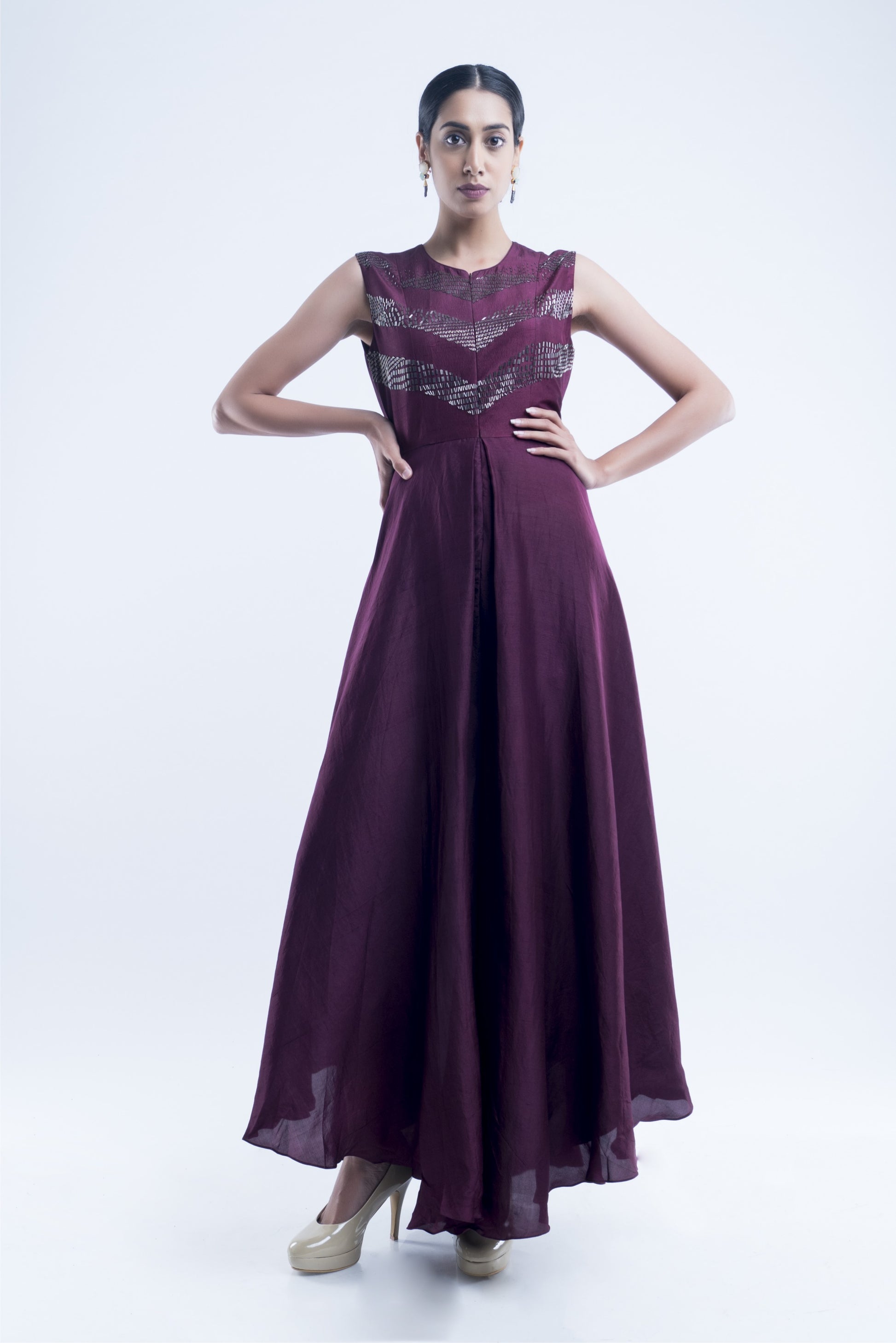 Dark Purple Embroidered Flared Jumpsuit